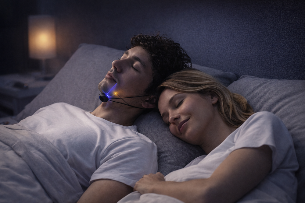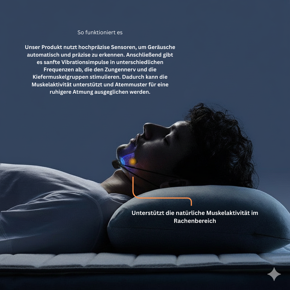 ATUM erkennt Schnarchgeräusche im Schlaf selbstständig und reagiert nur dann, wenn es nötig ist.